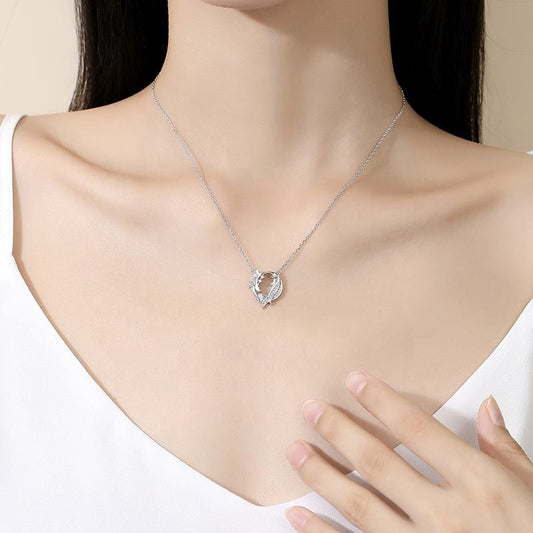 Butterfly & Blossom Silver Necklace | Pendant with Zircon Sparkle